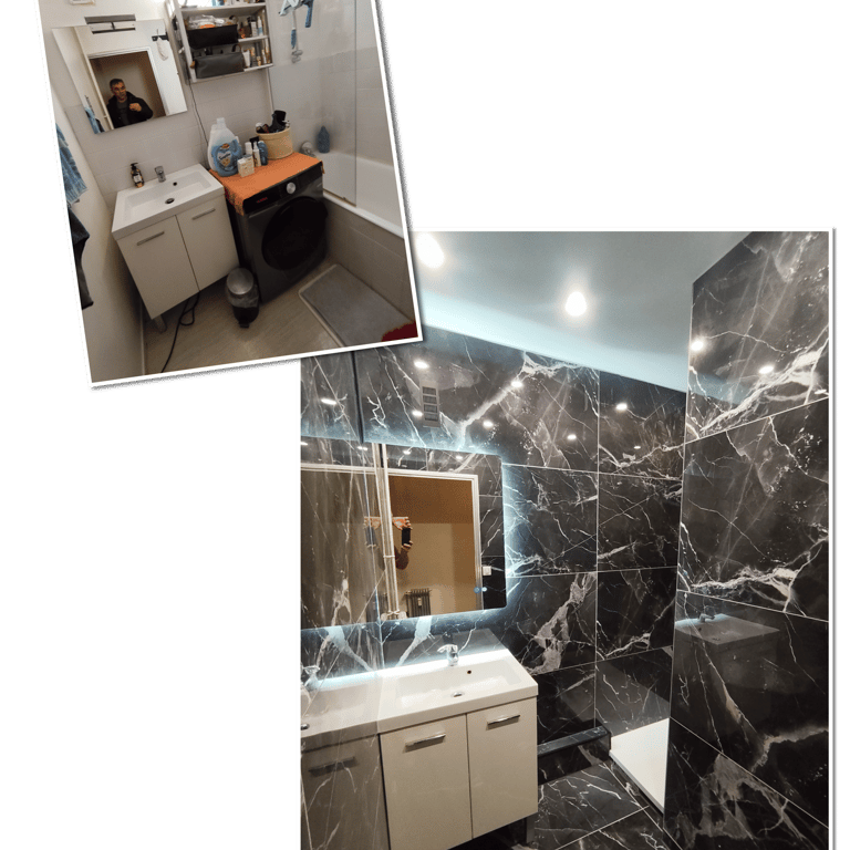 depuis les réseaux (eau, électricité) jusqu’aux revêtements (murs, sol et plafond), en passant par les équipements sanitaires (douche, lavabo, baignoire, robinetterie ...)
